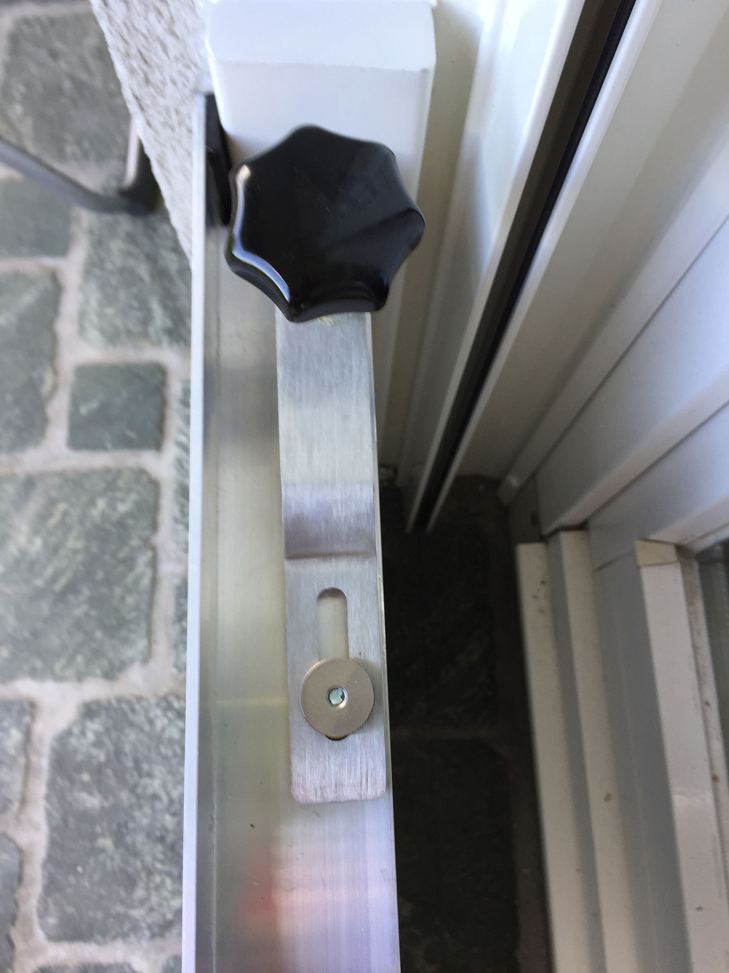 Das Schutzelement wird in die seilichen Systemprofile eingeführt, die ihrerseits dicht mit dem Mauerwerk verklebt und verankert sind. Schwellenprofile sind nur bei, extrem, unebenen Untergrund oder aus konstruktiven Gründen erforderlich. Der Druck auf die Dichtung zum Boden hin wird durch je zwei integrierte Spannstücke, erreicht.